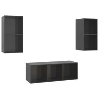 vidaXL 3 Piece TV Stand Set - High Gloss Gray Engineered Wood - Hanging, Wall-Mounted Storage Cabinets - Easy to Clean and Assemble - Ideal for Modern Living Room Decor