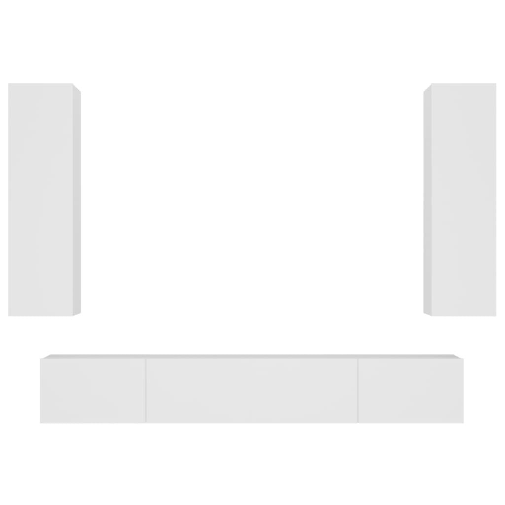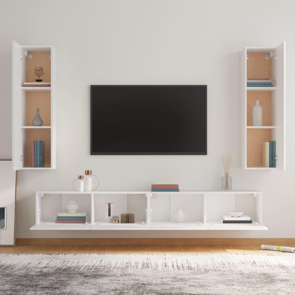vidaXL Engineered Wood TV Stand Set - 4 Pieces, Classic White - Provides Stylish Storage and Display for Entertainment Systems