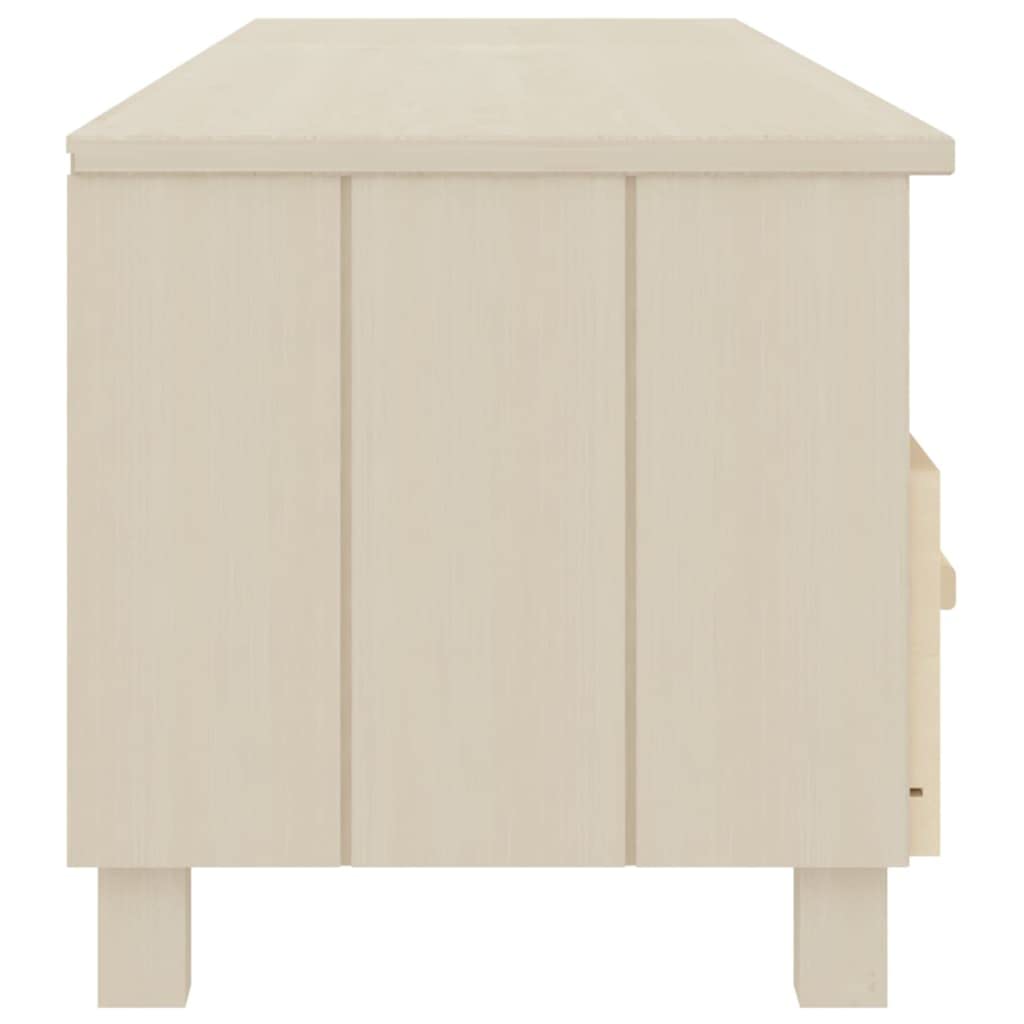 vidaXL Hamar Honey Brown Solid Wood TV Stand with Drawers - 62.2"x15.7"x15.7" - Durable Pinewood and MDF Construction, Rustic Design, Ample Storage Space, Cord Management Feature