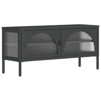 vidaXL Modern TV Stand – Black, Powder-Coated Steel and Fluted Glass, with Adjustable Shelf and Levelers, Ideal for TV and Stereo Systems, 41.3"x13.8"x19.7"
