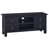 vidaXL Solid Mahogany Wood TV Stand - Lightweight Storage Unit with Four Drawers and Two Shelves - Natural Light Black Coffee Color Finish - 39.4"x11.8"x17.7" Dimensions
