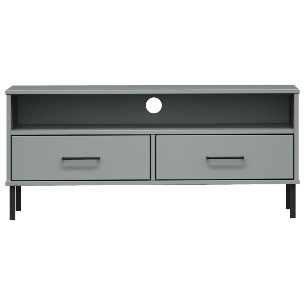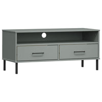 vidaXL Solid Pine Wood TV Stand with Metal Legs- Gray, 2 Drawers & Spacious Compartment, Ideal for Living Room Decor, Oslo Range