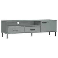 vidaXL Solid Wood Pine TV Stand with Metal Legs - Spacious Storage, Easy Assembly, Industrial Design Gray Finish