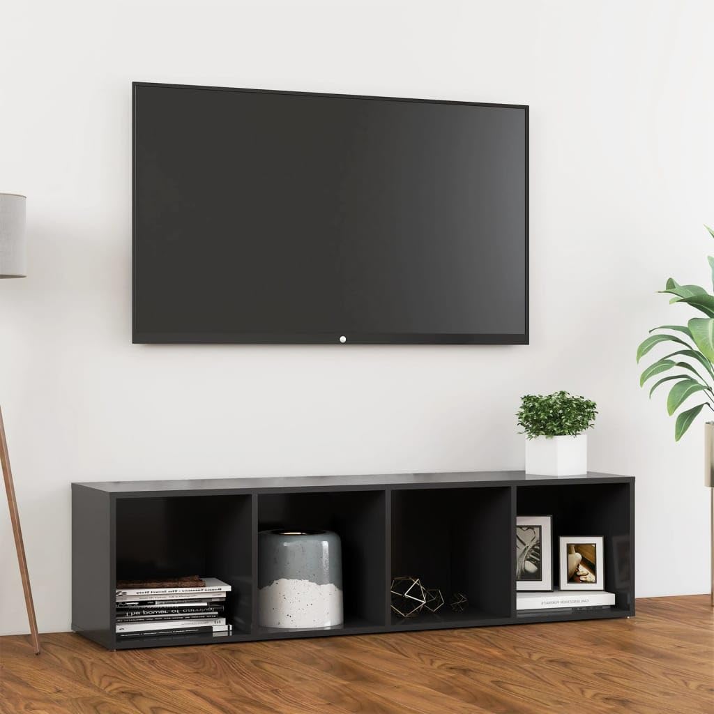 This TV stand is equipped with 4 compartments, offering ample storage space for keeping your magazines, books, DVDs and multimedia devices well organized and within reach. Additionally, the TV unit can be placed horizontally or vertically, making it a perfect addition to your current living space. Color: Gray Material: Engineered wood Dimensions: 56.1 x 13.8 x 14.4 (W x D x H) Includes 4 compartments Can be placed horizontally or vertically Assembly required: Yes Please note: Screw(s) and plug(s) for inside the wall are not included. Seek and use screw(s) and plug(s) suitable for your walls. If you are uncertain, seek professional advice. Read and follow each step of the instruction carefully. California Proposition 65