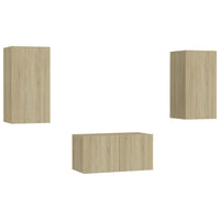 vidaXL TV Cabinet Set 3 Piece Living Room Furniture TV Stand HiFi Stereo Cabinet Media Unit Entertainment Center White and Sonoma Oak Engineered Wood