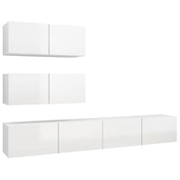 vidaXL TV Cabinet Set 4 Piece Living Room Bedroom Furniture HiFi Stereo Cabinet TV Stand Media Entertainment Center Engineered Wood High Gloss White