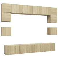 vidaXL TV Cabinet Set 8 Piece Home Indoor Hanging Wall-Mounted Stereo Plasma HiFi Cabinet TV Stand Unit Furniture Sonoma Oak Engineered Wood