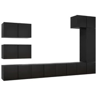 vidaXL TV Cabinet Set 8 Piece Home Living Room Furniture TV Stand HiFi Stereo Cabinet Media Unit Entertainment Center Black Engineered Wood