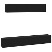 vidaXL TV Cabinet Set with Four Pieces– Durable and Stylish Engineered Wood TV Stand with Ample Space - Classic Black Design