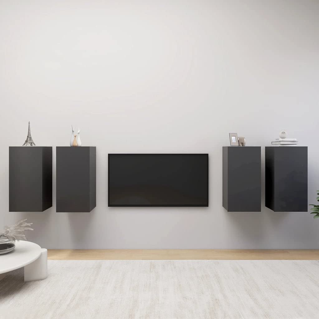 vidaXL TV Stand 4 Pcs, TV Stand for Living Room, Sideboard for Bedroom with Storage, TV Console Media Unit Cupboard, Modern, Gray Engineered Wood