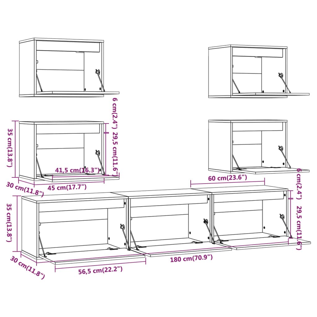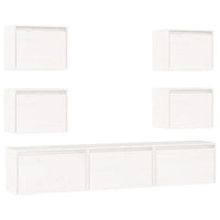 vidaXL TV Stand 7 Pcs Wall Mounted Entertainment Center TV Console with Storage Floating TV Stand for Living Room Bedroom White Solid Wood Pine
