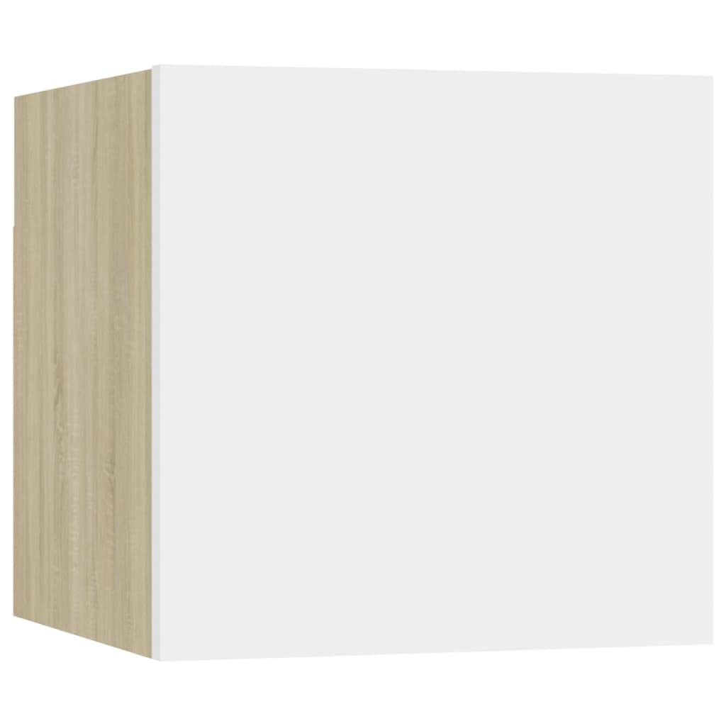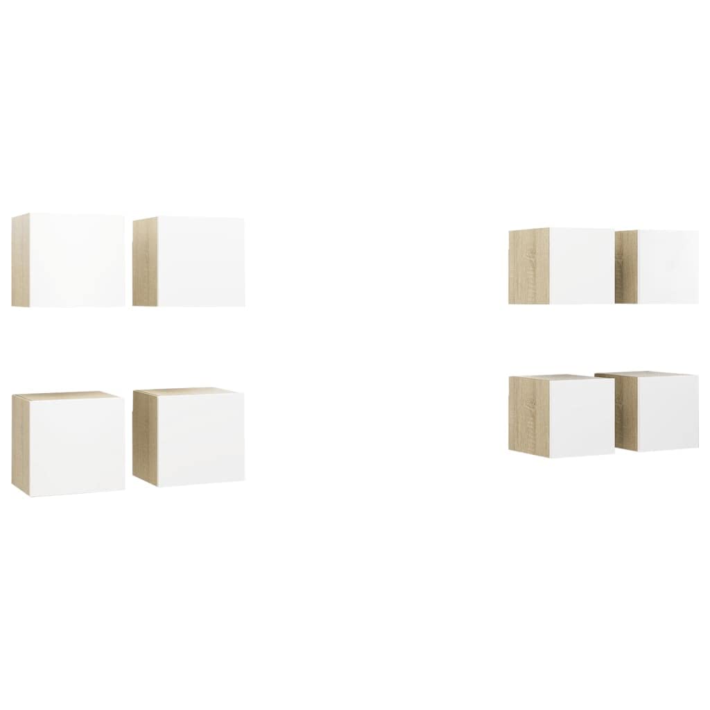 vidaXL TV Stand 8 Pcs, TV Stand with Storage, Wall-Mounted TV Unit for Living Room, TV Console Media Unit Cupboard, Modern, White and Sonoma Oak