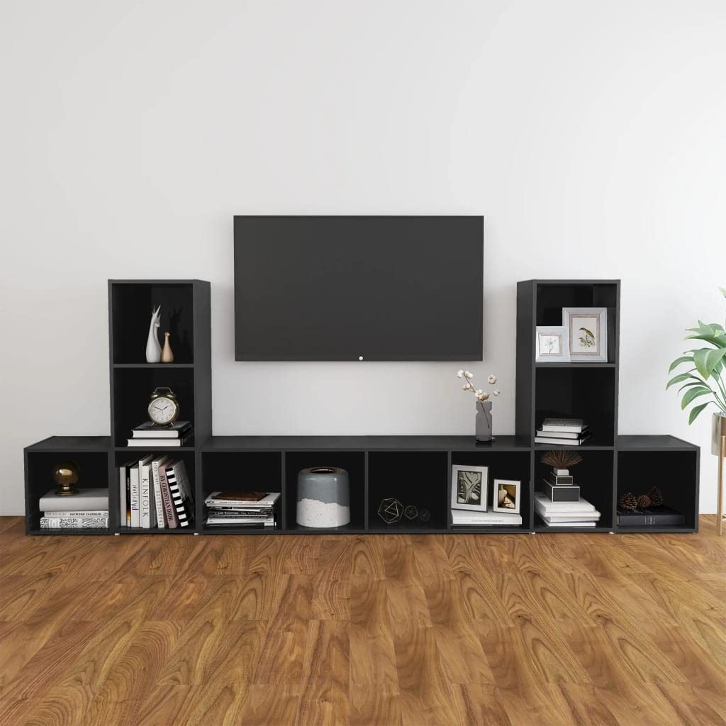 vidaXL TV Stand Set 5 Piece, TV Stand for Living Room, Sideboard with Storage, Media Unit Cupboard, Modern, High Gloss Gray Engineered Wood
