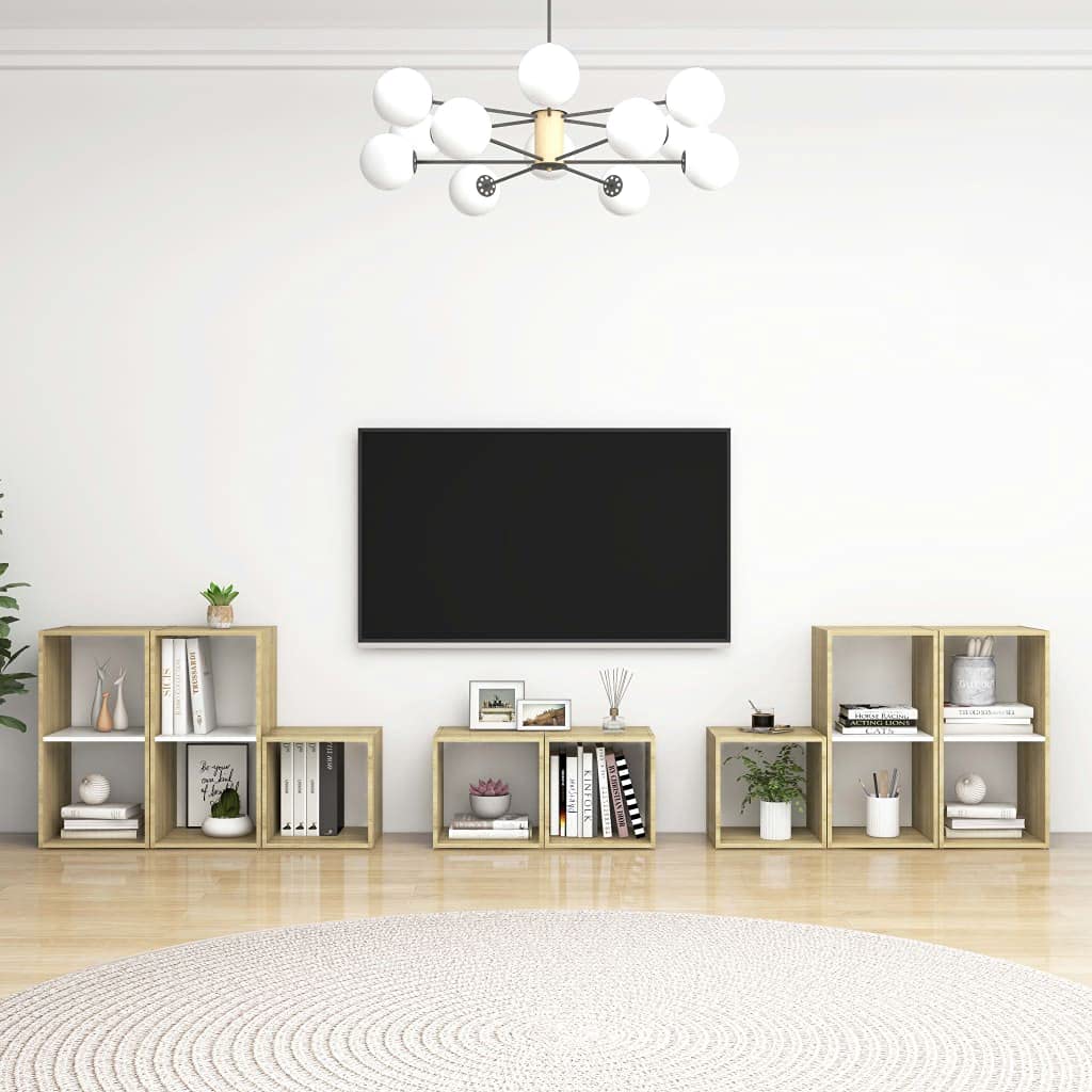 vidaXL TV Stand Set 8 Piece Bedroom Living Room Entertainment Center HiFi Cabinet TV Stand Unit Furniture White and Sonoma Oak Engineered Wood