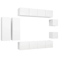 vidaXL TV Stand Set 8 Piece Home Living Room Bedroom Furniture HiFi Stereo Cabinet TV Stand Media Unit Entertainment Center Engineered Wood White