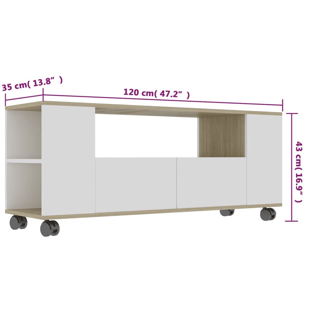 vidaXL TV Stand, TV Unit for Living Room, Sideboard with Drawer, Entertainment Center Media Unit, Modern, White and Sonoma Oak Engineered Wood