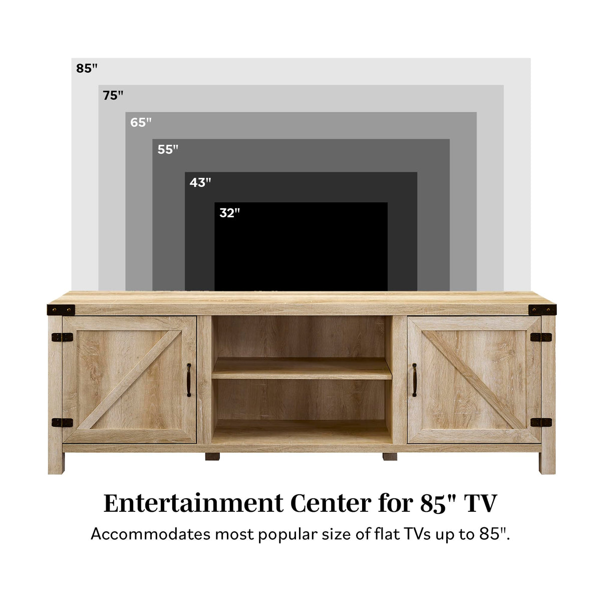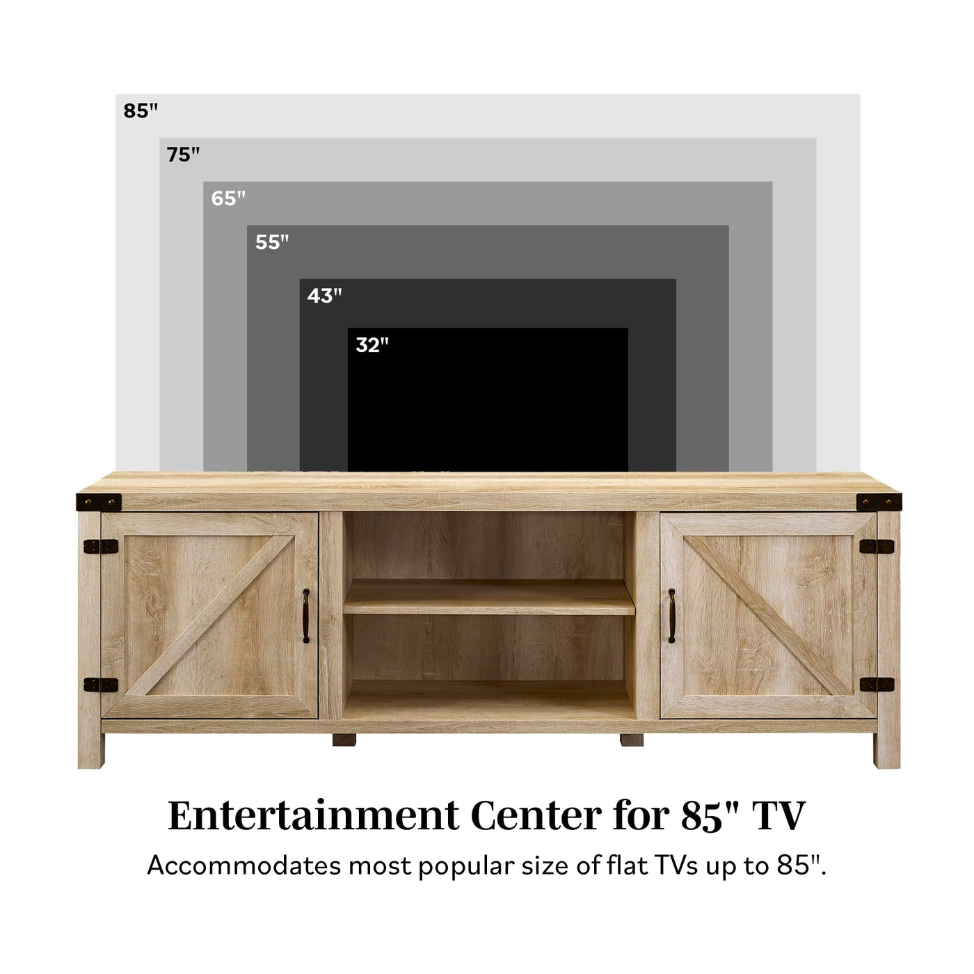 Walker Edison Georgetown Modern Farmhouse Double Barn Door Tv Stand For Tvs Up To 80 Inches, 70 Inch, White Oak, Without Fireplace