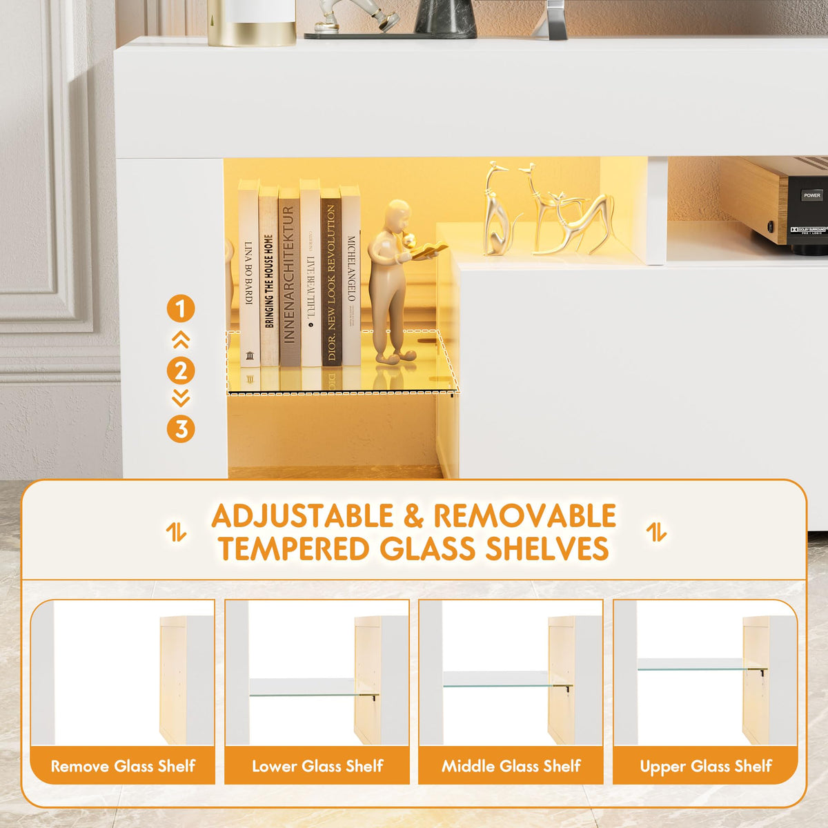 Yeshomy Modern Led Tv Stand For Televisions Up To 70 Inch With Glass Shelves And Drawer, Gaming Entertainment Center With Multiple Dynamic Rgb Modes, For Livingroom, Bedroom, 60 Inch, White