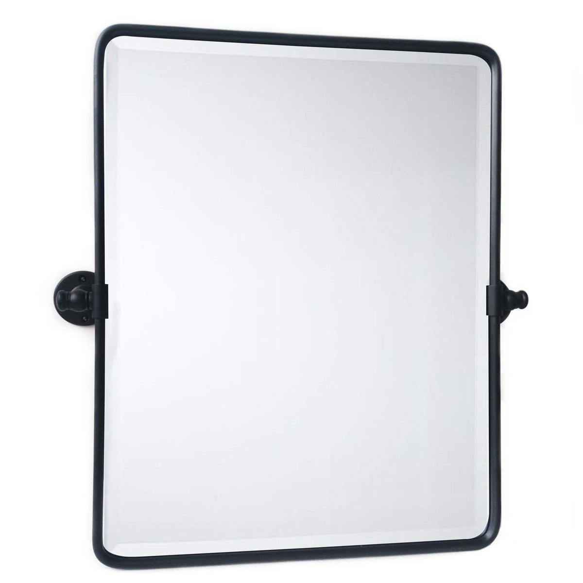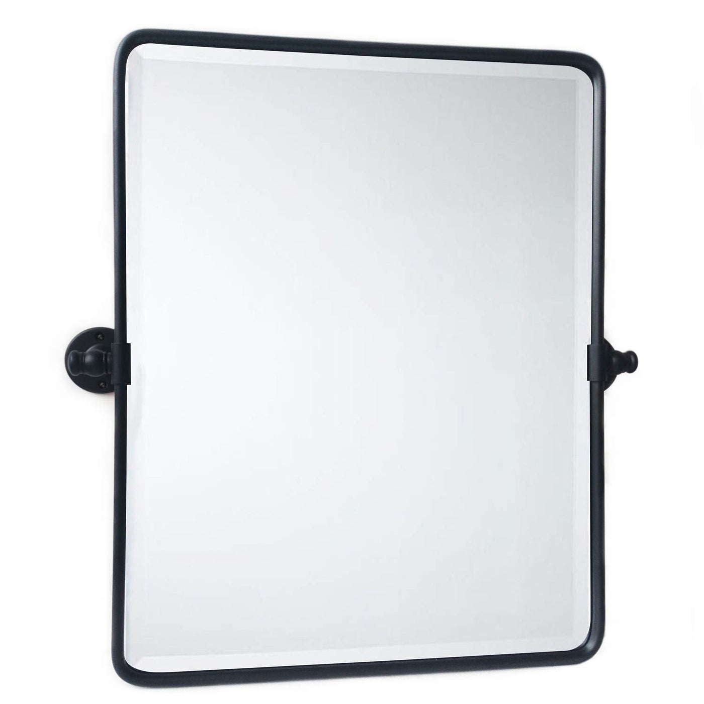 20 X 24 Farmhouse Black Metal Framed Pivot Rectangle Bathroom Mirror Rounded Rectangluar Tilting Beveled Vanity Mirrors For Wal