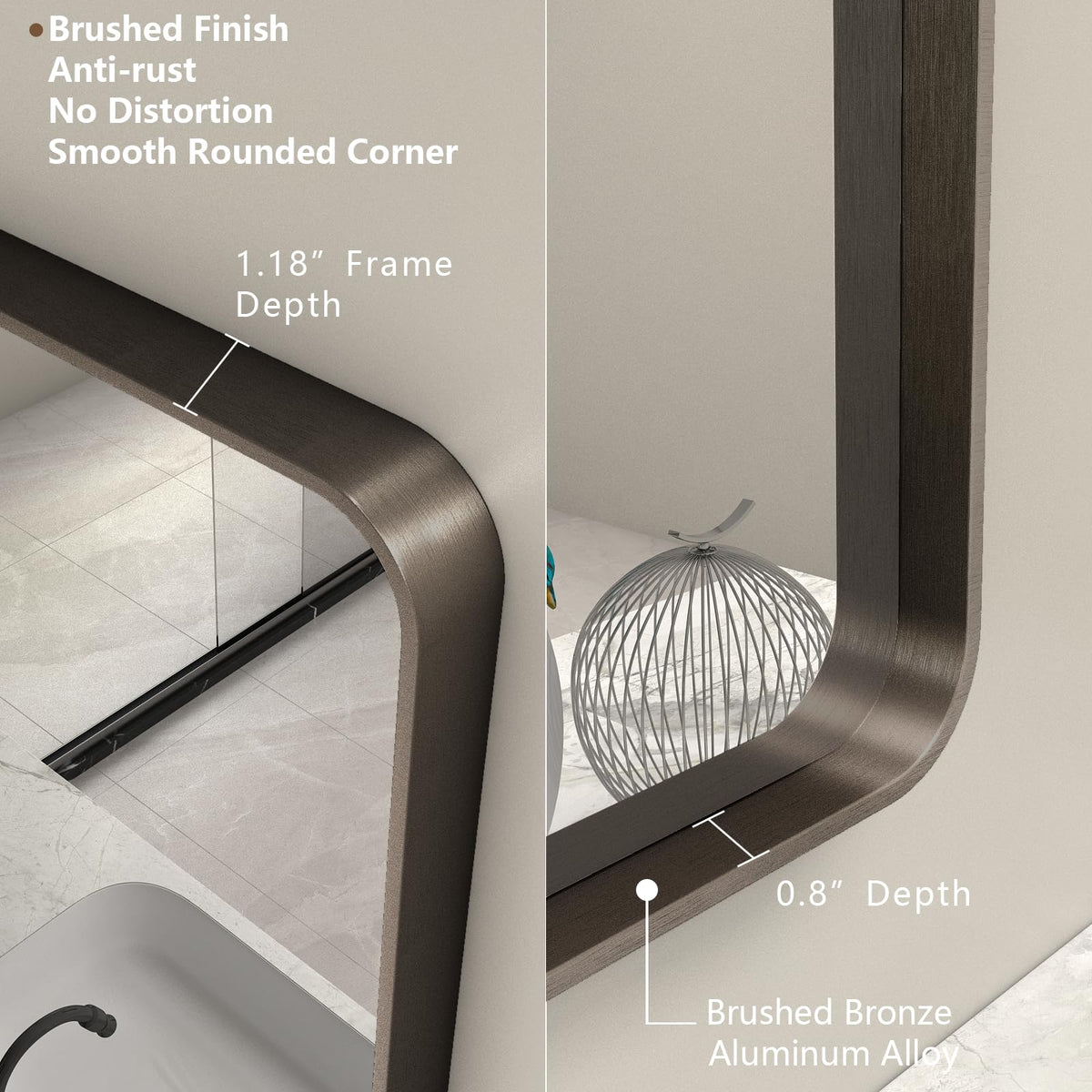 Charmor 60X40 Bronze Bathroom Mirror, Brushed Bronze Metal Frame Mirrors For Wall, Rounded Rectangle Bronze Mirror For Vanity,Fa