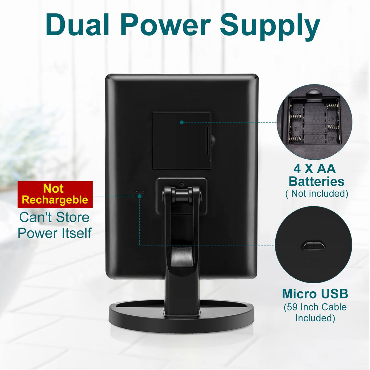 Found Your Beauty In Cosmirror Led Lighted Makeup Mirror&Nbsp;? High Definitions Clear Vanity Mirror With 21Pcs Bright Led Lights? Detachable 10X Magnification Mirror For Detail Makeup&Nbsp;? Adjustable Brightness, Hold The Sensor Switch Longer Can Make Light Dim Or Bright Up.? 180 Degree Rotation Allows For Easy Adjustment Of The Mirrors Face For Convenient Viewing At Any Angle.&Nbsp;? Dual Power Supply Through 4 X Aa Batteries (Not Included) Or Usb Cable (Including) Which Makes It Portable As Well? Detachable Tray For Storage That Can Be Cleaned And Used? It'S The Best Present For Ladies And Girls In Halloween, Christmas, New Year, Valetine'S Day, Mother'S Day, Birthday, Party, Performance, Special Occasions, Etc.&Nbsp;Operation Tips:&Nbsp;Step 1: Put 4Pcs Aa Batteries In (Not Included) Or Plug The Usb Cable Tightly In The Usb Port.&Nbsp;Step 2: Firstly, Touch The Sensor Switch (The Big Circle On Mirror) With Your Finger, The Mirror Will Light Up.&Nbsp;Step 3: Secondly, Please Touch The Sensor Switch For 3 Seconds, Which Will Change Brightness Of The Light Gradually. Release Your Finger Till The Brightness Of The Light Is Right For You.&Nbsp;Whats In The Package?1 X Cosmirror Vanity Mirror With 21 Led Lights1 X 10X Magnifying Makeup Mirror1 X 1.5M Usb Cable&Nbsp;1 X User Manual&Nbsp;Please Note:1.Do Not Power It By Usb Charging And Battery At The Same Time.2. When You Don'T Need It, Please Turn Off Led Light After Makeup.3.Please Check Whether The Usb Cable Is 100% Plugged In The Micro Usb Port.