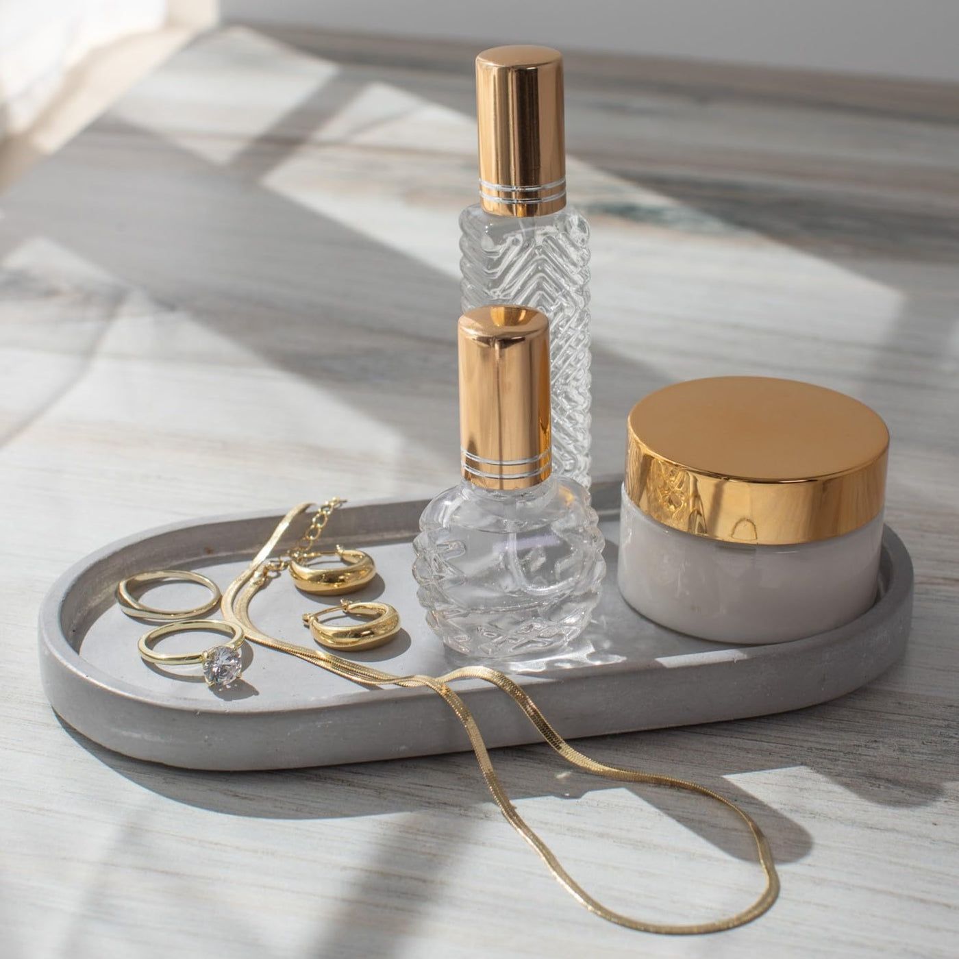 Q: What makes this tray unique compared to other vanity trays?A: This tray stands out due to its minimalist modern design combined with a touch of luxury. Each piece is one-of-a-kind due to the natural characteristics of concrete, ensuring that no two trays are alike.