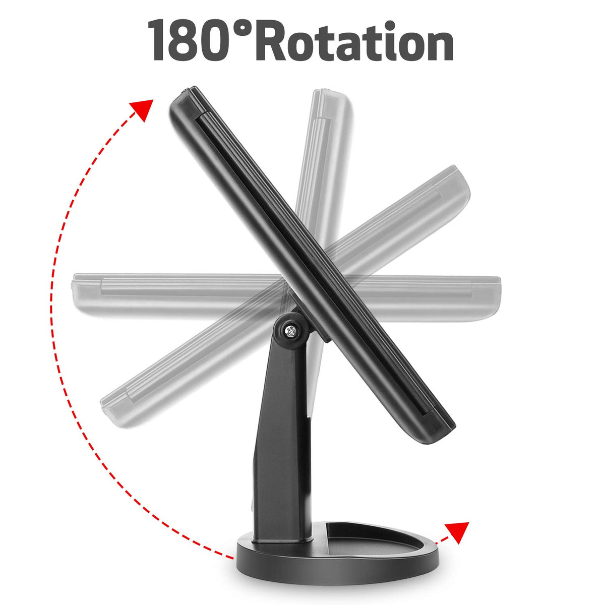 Product Description Color:Black Mirror Features: Sleek Look And Magnification. So Convenient To Take With You To Anywhere,In The Pub Or Car Or The Darkness, Lighted Makeup Mirror Can Help You Makeup Any Time. Base Recess Can Hold Jewellery Cosmetics:Earrings, Bracelets, Etc. Perfect Gift For Ladies And Girls In Holiday Days, Birthday, Party, Special Occasions Etc. Specification: * 3X/2X/1X Magnifying * Frame Material: Abs * Product Size: 11*7.3*3.9 Inch-- The Entire Height Is 11' Tall. Middle Mirror Is 9.5'X 7'And Double Side Mirror Dimension Is 9.5'X 3.2' * Net Weight:0.8Kg * 180 Degrees Rotation. Led Lights: 21Pcs Led, High Brightness Led Control: Touch Screen On /Off Power: Usb Chargeable Or 4Pcs Aaa Battery Powered (Battery Not Included) Voltage: Only Fits With Power Adapter Dc5V/0.5A-1A-2A Or You Can Connect With Your Other Devices Like Pc, Power Bank With Standard Usb Interface. Switch: Touch Switch , When You Do Not Need It, Pls Turn Off To Save Electricity. We Are Concerned About Every Customer, If You Have Any Questions, Please Don'T Hesitate To Contact Us. Package Include: 1X Mirror 1X Usb Cable 1X User Manual Please Note 1.Do Not Power It By Usb Charging And Battery At The Same Time. 2. When You Don'T Need It, Please Turn Off Led Light After Makeup.3.Pls Check Whether The Usb Cable Is 100% Plugged In The Micro Usb Port.