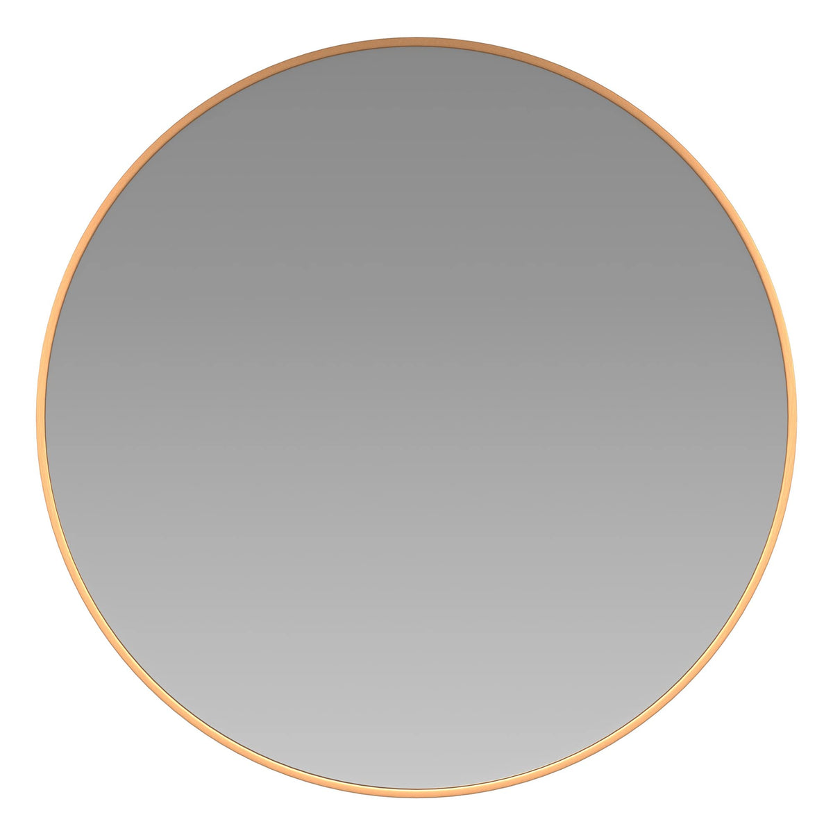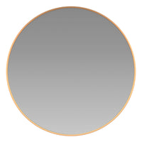 Whether you're updating your space or moving to a new one, gather natural light and make any room in your home seem bigger with this round wall mount mirror. The modern design boasts a slim, oxidized gold aluminum frame that lends an aged look to blend in almost any decor. Silver backed 4mm glass provides high reflectivity for a distortion-free image. Modern mirrors are safety-minded for a better fit in homes with children and pets. Shatterproof backing technology ensures the glass stays put in case of accidental breakage to prevent cuts to small feet or paws. The waterproof and rust-resistant design make this large mirror ideal for use in high humidity areas such as bathrooms, kitchens, and balconies. The mounting hardware is included with your new mirror so you can install it as soon as you receive it. Clean with water followed by a dry cloth to maintain its great looks.