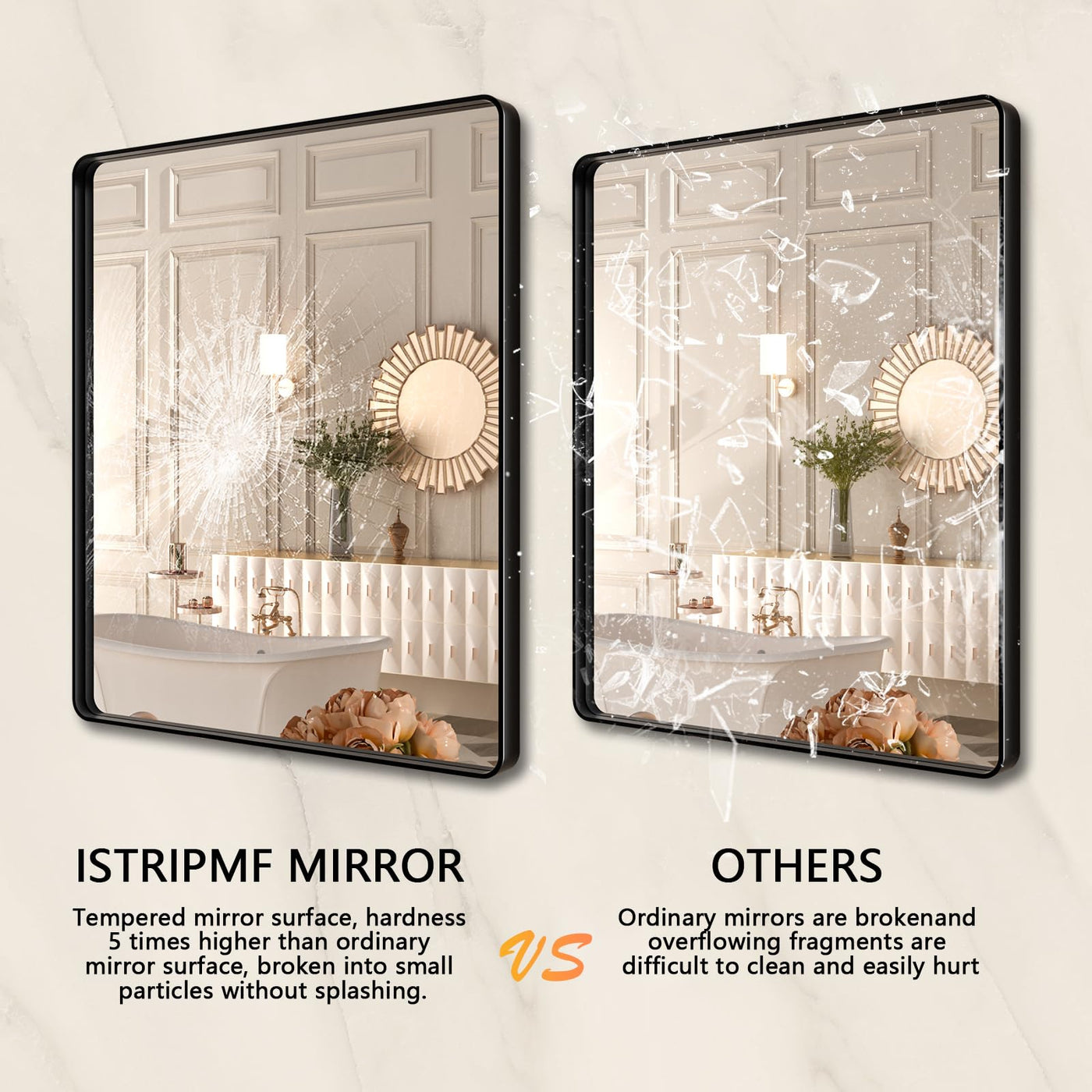 Q: What styles does this mirror complement?A: The simple classic line and modern industrial design of the ISTRIPMF mirror make it a versatile wall decor piece, perfect for various home decoration styles including farmhouse, contemporary, and minimalist.