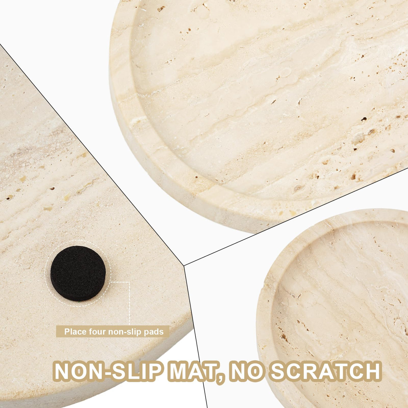Q: How do I care for and clean the travertine tray?A: To maintain your travertine tray, simply wipe it with a damp cloth and mild soap. Avoid harsh chemicals that may damage the stone's surface.