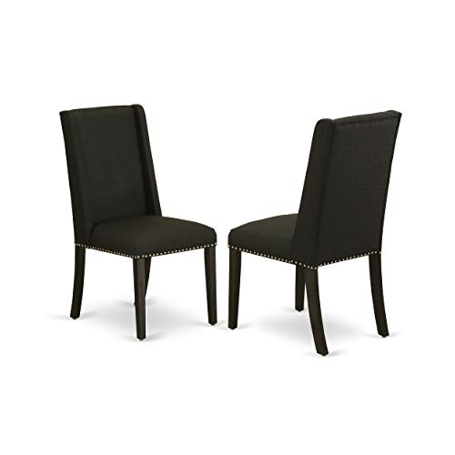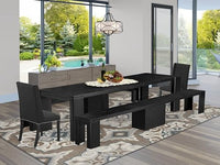 Luxe East West Furniture X02FL-206-24 5-piece Xtenczar Dining Table Set a Rectangular Xtenczar Dining Table and 2 wooden benches 12 Black Linen Fabric kitchen Chair, Wire Brushed Black Finish.