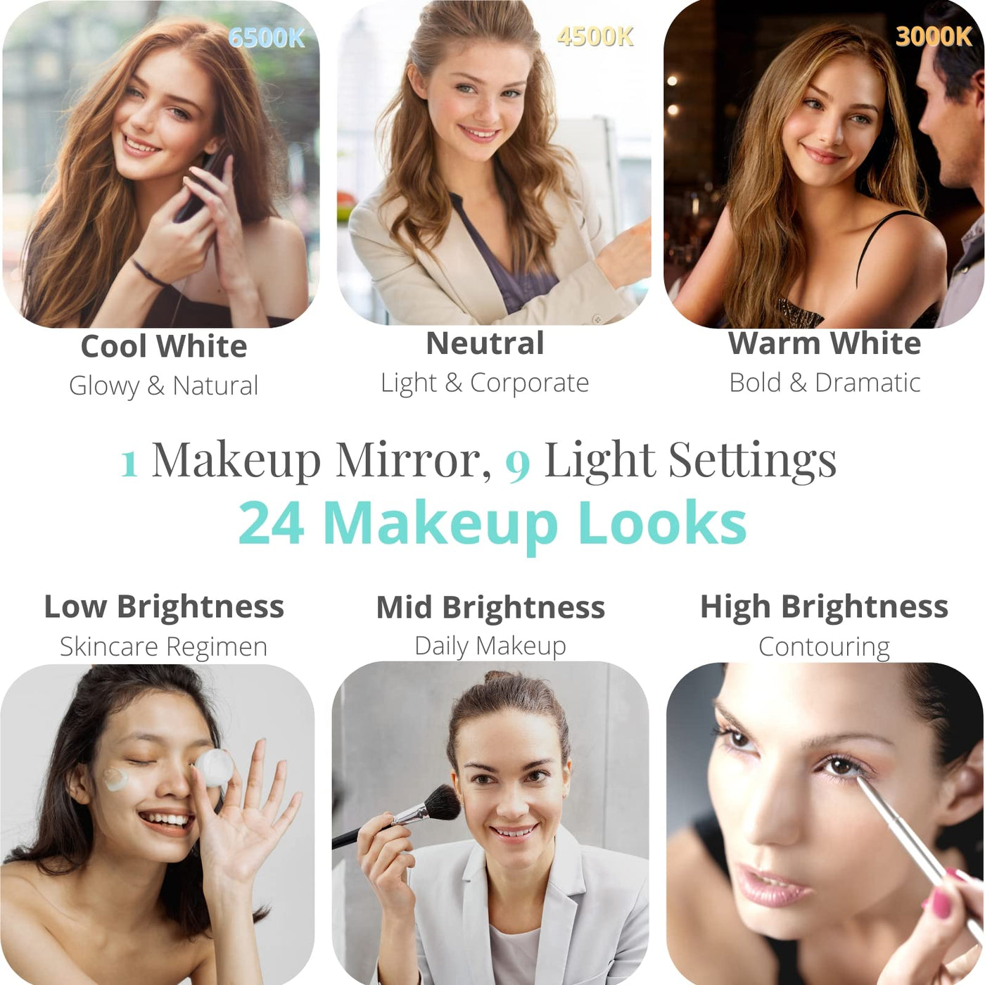 Q: Is the mirror easy to use for everyday makeup application?A: Yes, the mirror is designed with a smart touch control panel, making it easy to adjust brightness and color temperature, ensuring an optimal makeup experience.