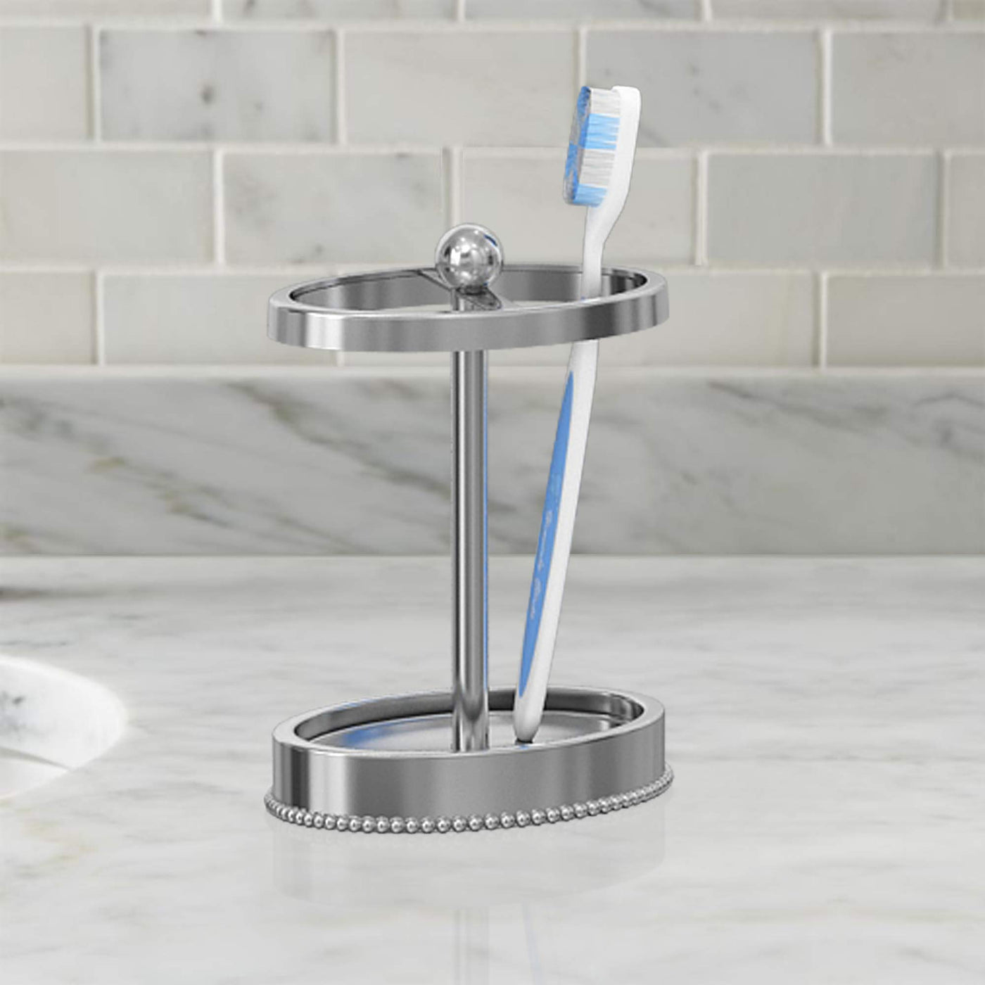 Nu Steel Toothbrush Holder Holds Up To 4 Toothbrushes, Including Spin Brushes And Kids' Toothbrushes. Its Clean Design Features A Metal Shiny Finish To Complement Any Bath Decor. All Our Products Are Beautifully Designed To Not Only Look Like A Great Piece Of Decor But Also Add Functionality To Your Home.