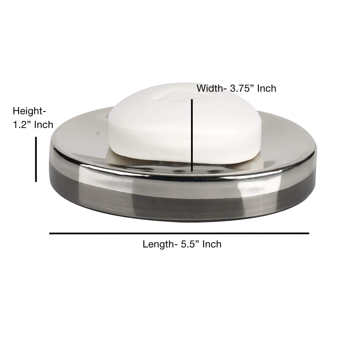Q: What are the dimensions of each piece in the set?A: The nu steel Triune Bath Accessory Set includes the following dimensions: Soap Dish: 5.38 x 3.75 x 1.13 inches, Toothbrush Holder: 2.63 x 2.63 x 5.25 inches, Tumbler: 2.88 x 2.88 x 4.5 inches, and Soap Pump Dispenser: 2.75 x 2.75 x 6.75 inches.