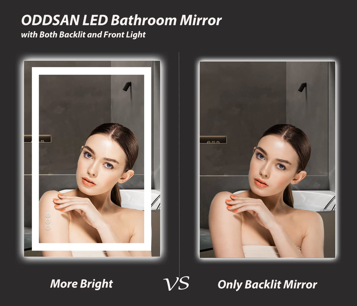 Oddsan Led Lighted Bathroom Vanity Mirror For Wall With Lights - Front Lights And Backit - Stepless Colors Adjustable - Dimmable - Anti-Fog - Cri 90 - Frameless - Shatter-Proof - Plugin - Hardwire ( Wall Switch) - Etl Listed - Horizontally Or&Nbsp;Vertically Mounted
