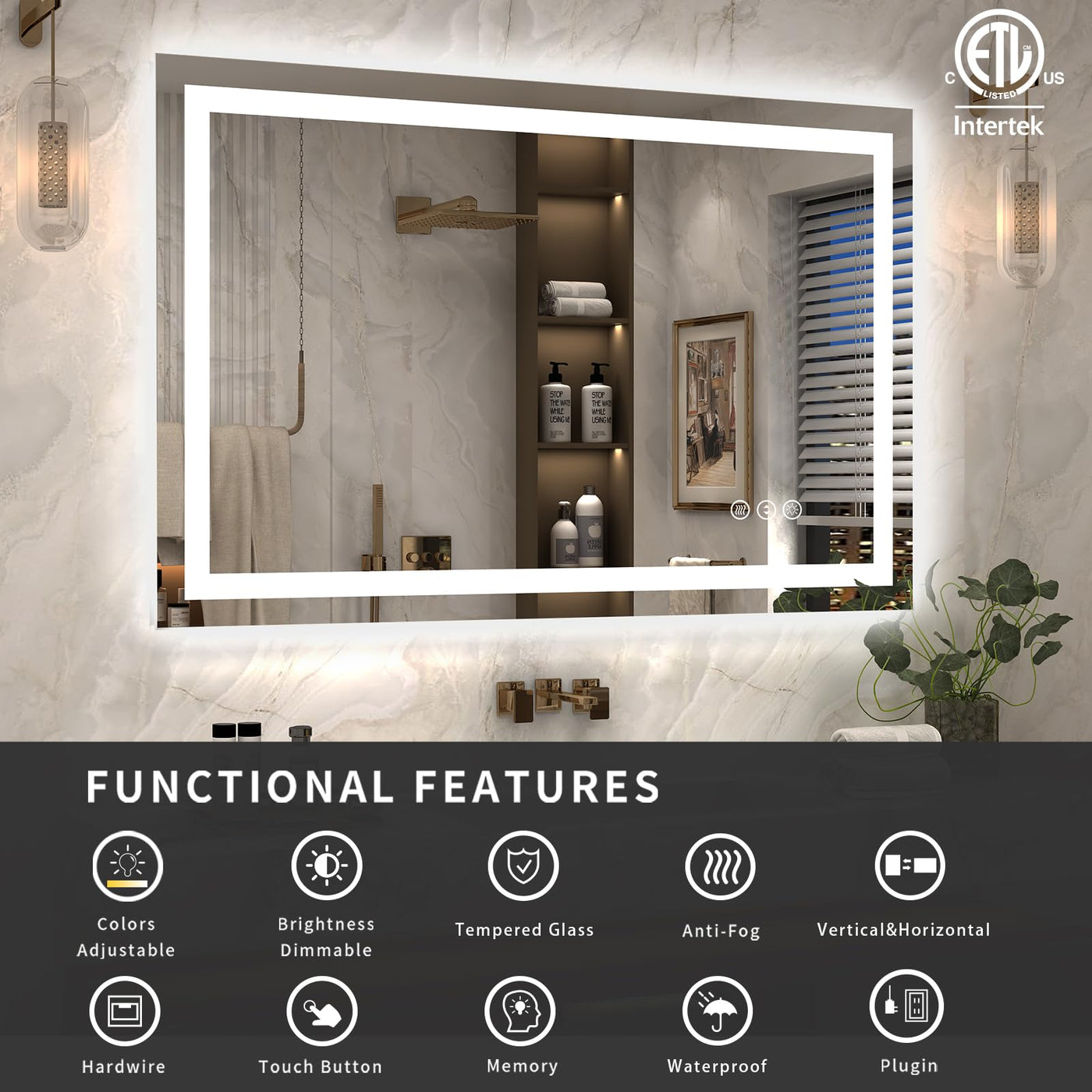 Oddsan 48X32 Led Lighted Mirror For Bathroom Wall, Smart Illuminated Vanity Mirror With Lights, Dimmable, Anti-Fog (Front Lights