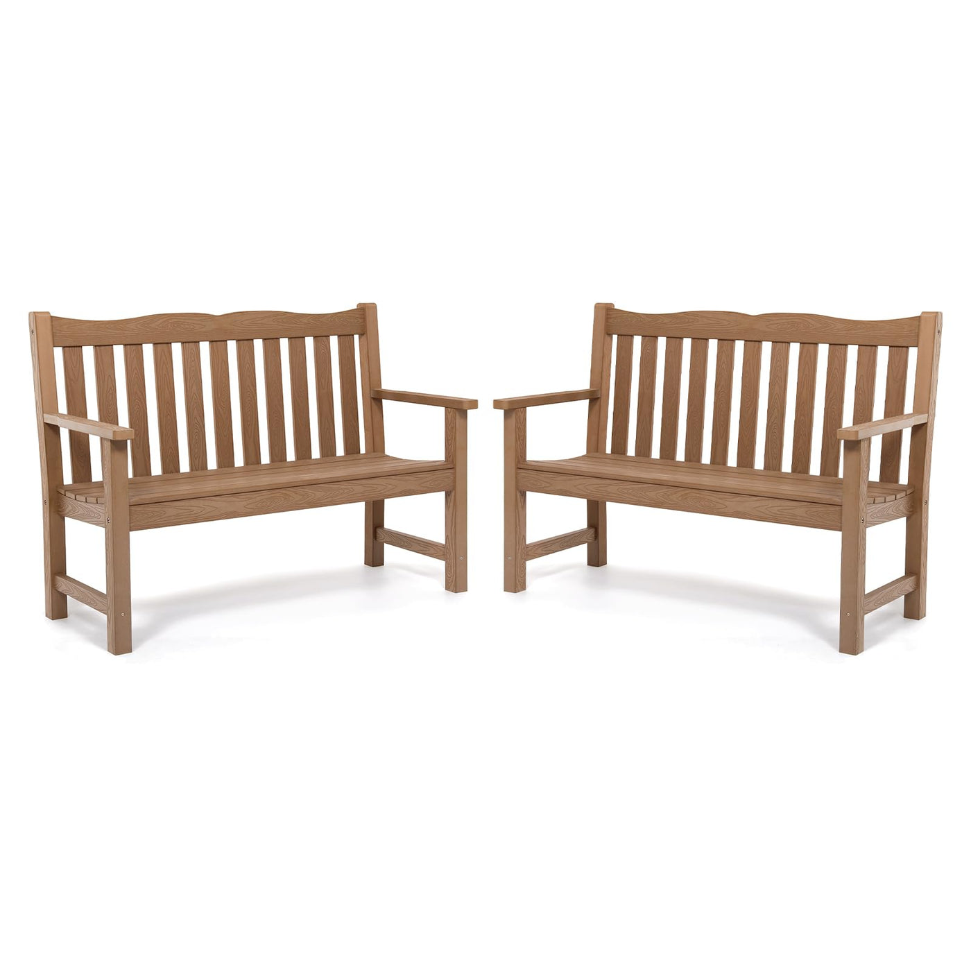 Outdoor Benches Set Of 2, 2-Person Poly Lumber Garden Bench, Never Rot Or Fade, Looks Like Real Wood, Teak
