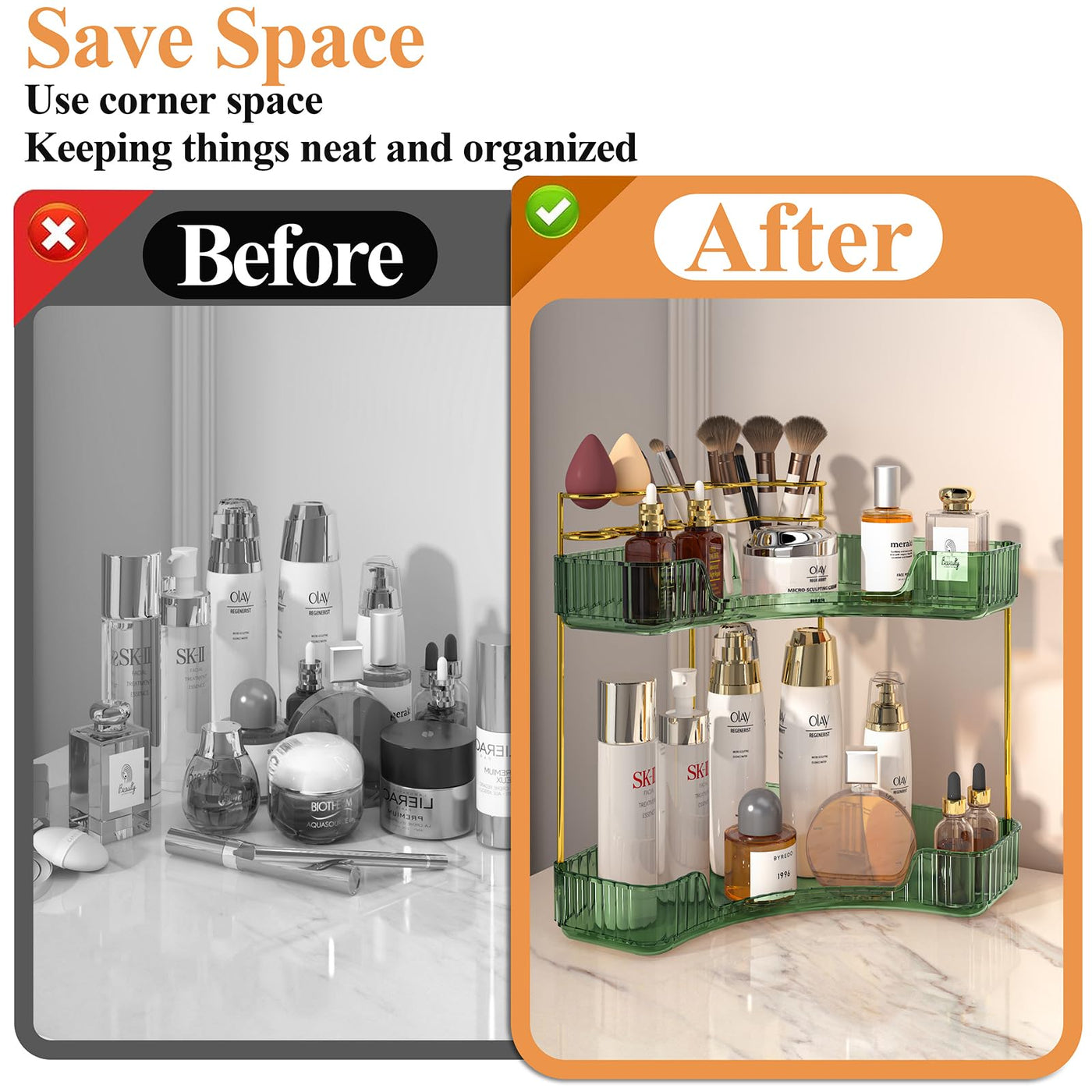 Q: Is this organizer suitable for small bathroom spaces?A: Yes, the unique 90-degree corner design of the SUNZOS Bathroom Counter Organizer makes it perfect for utilizing underused corner spaces, effectively saving counter space while keeping your items organized and accessible.