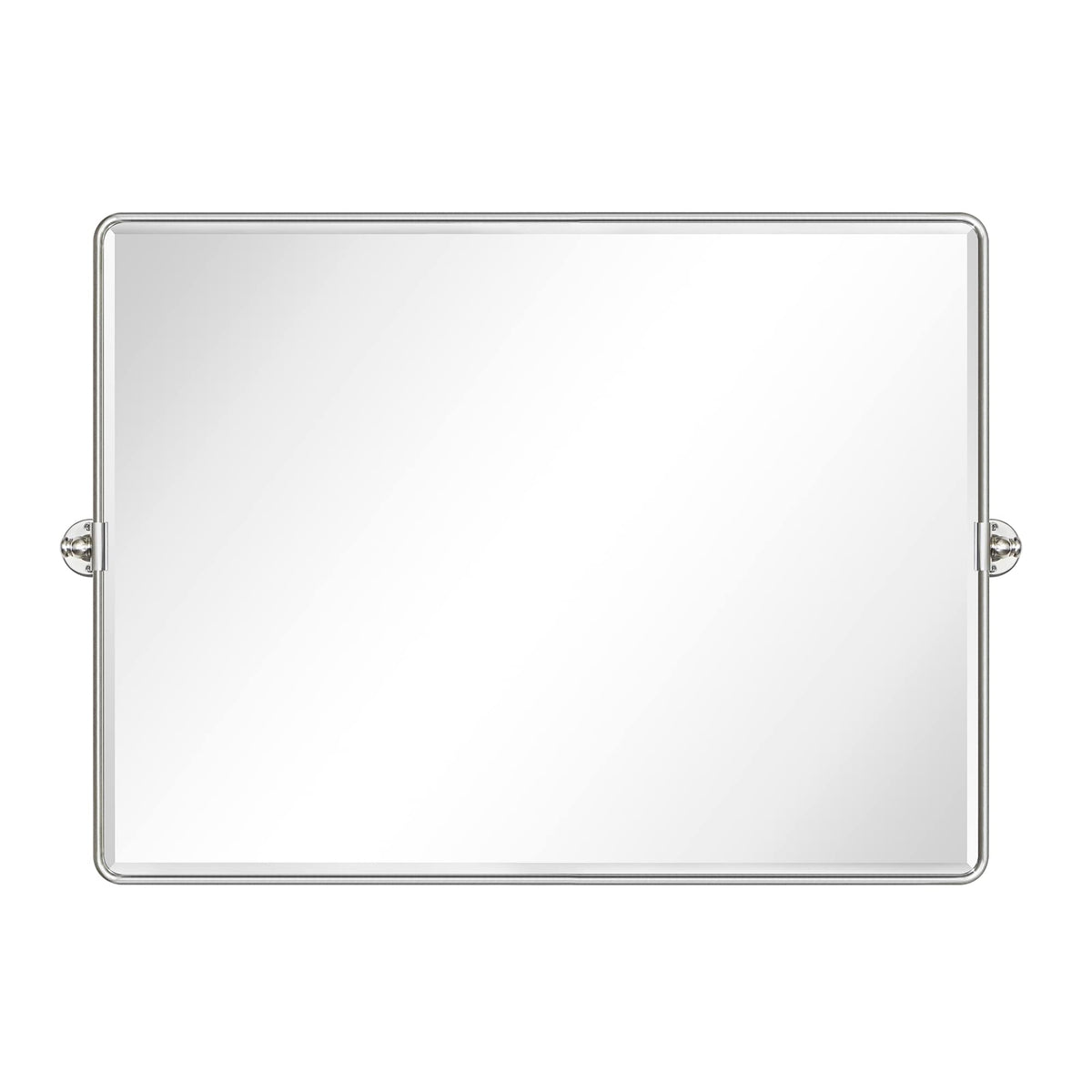 Tehome 40X30'' Brushed Nickel Horizontal Pivot Mirror 30X40'' Metal Framed Rectangle Tilting Beveled Vanity Mirrors For Wall