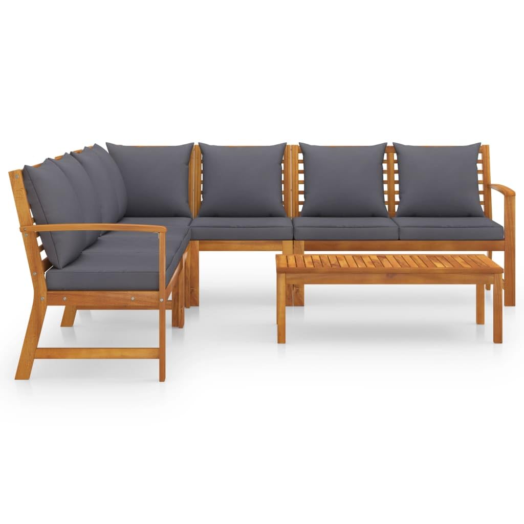 vidaXL Modern 6 Piece Patio Lounge Set, Solid Acacia Wood, Dark Gray Cushions - Easy Assembly - Includes Table, Corner Sofa, Benches and Cushions