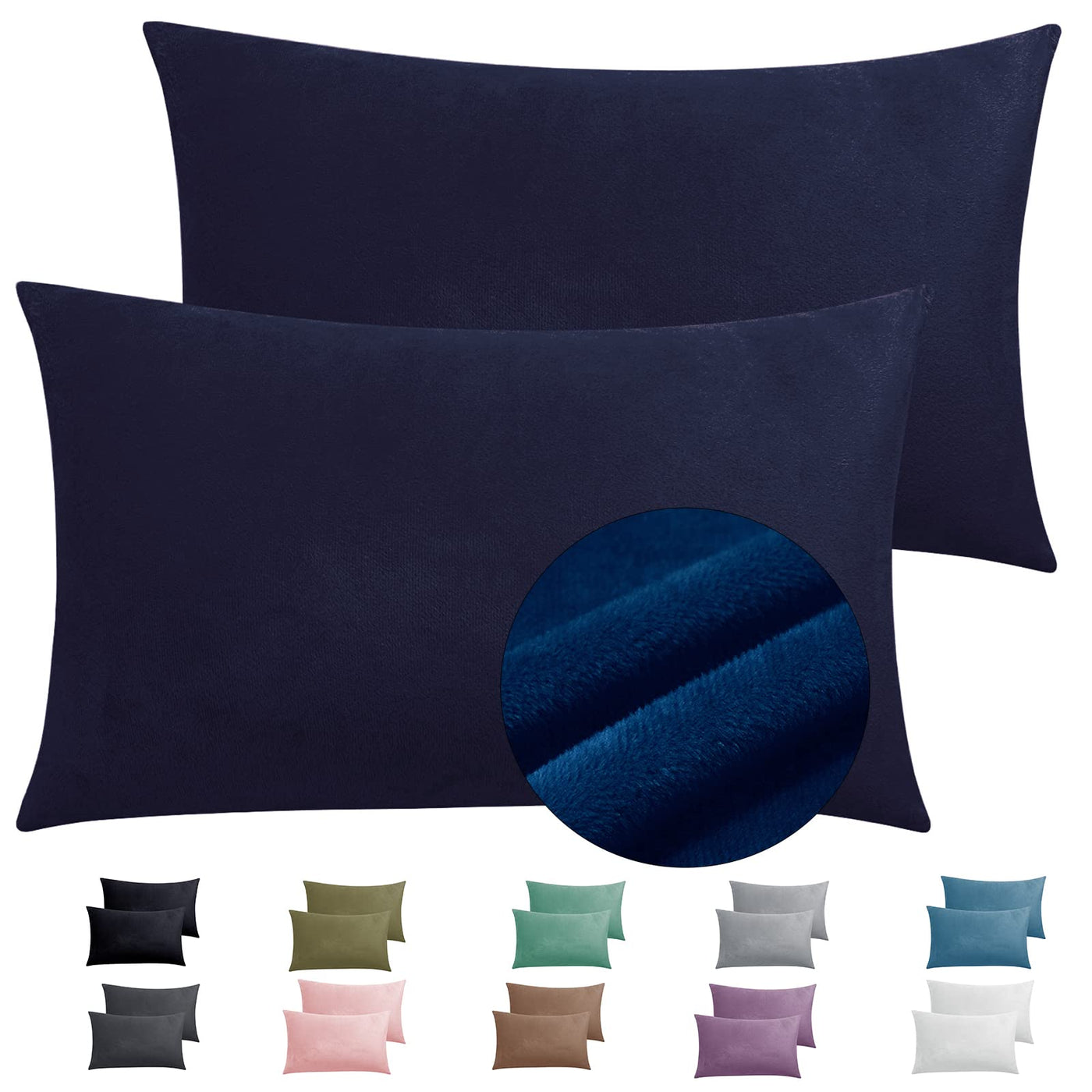 2 Pack Zippered Velvet King Pillowcases, Super Soft And Cozy Luxury Fuzzy Flannel Pillow Cases With Zipper, 20X36 Inches, Navy B