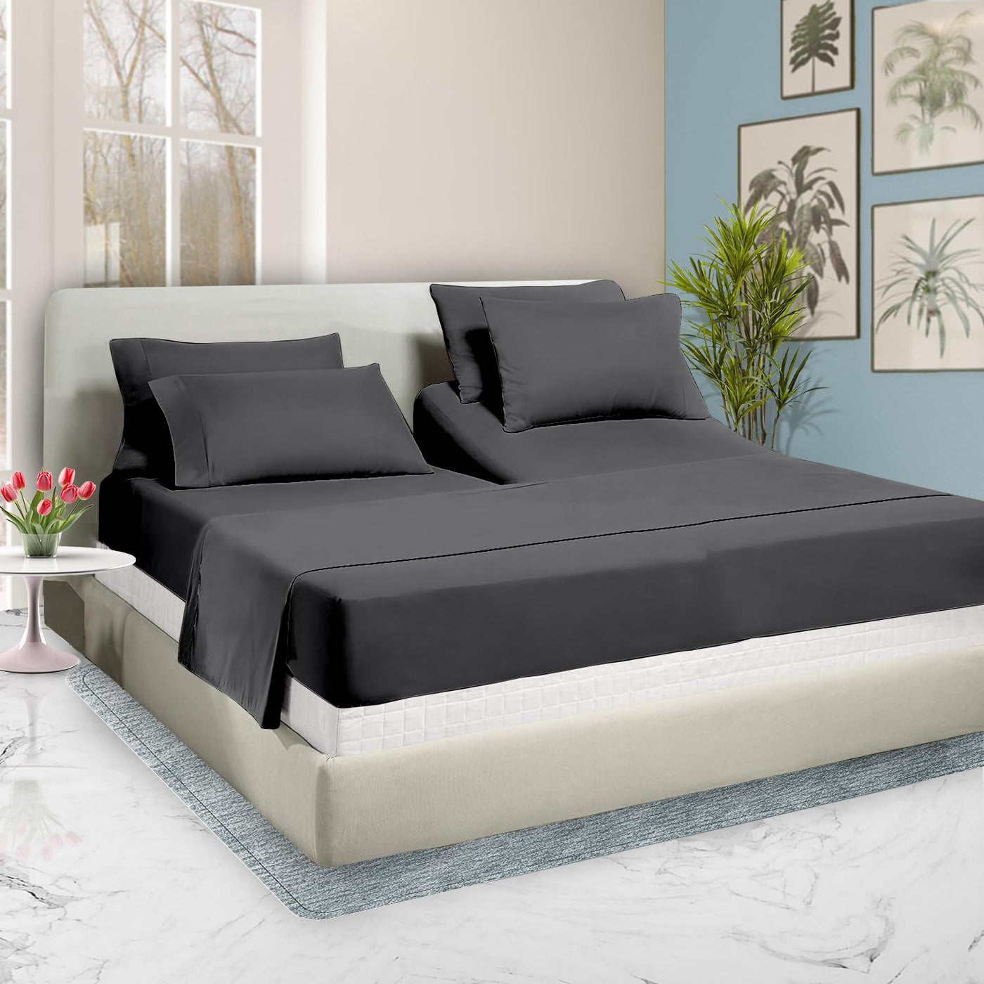 34 Inch Top Split King Flex Head Sheet Set For Sleep Number Beds -1000 Thread Count Egyptian Cotton Sheet Set Dark Gray Solid Fi