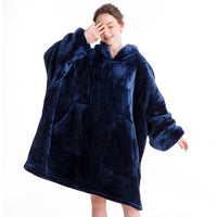Aemicion Oversized Wearable Blanket Sherpa Blanket Hoodie Soft Warm Thick Big Hoodie Sweatshirt For Adults Men-Navy