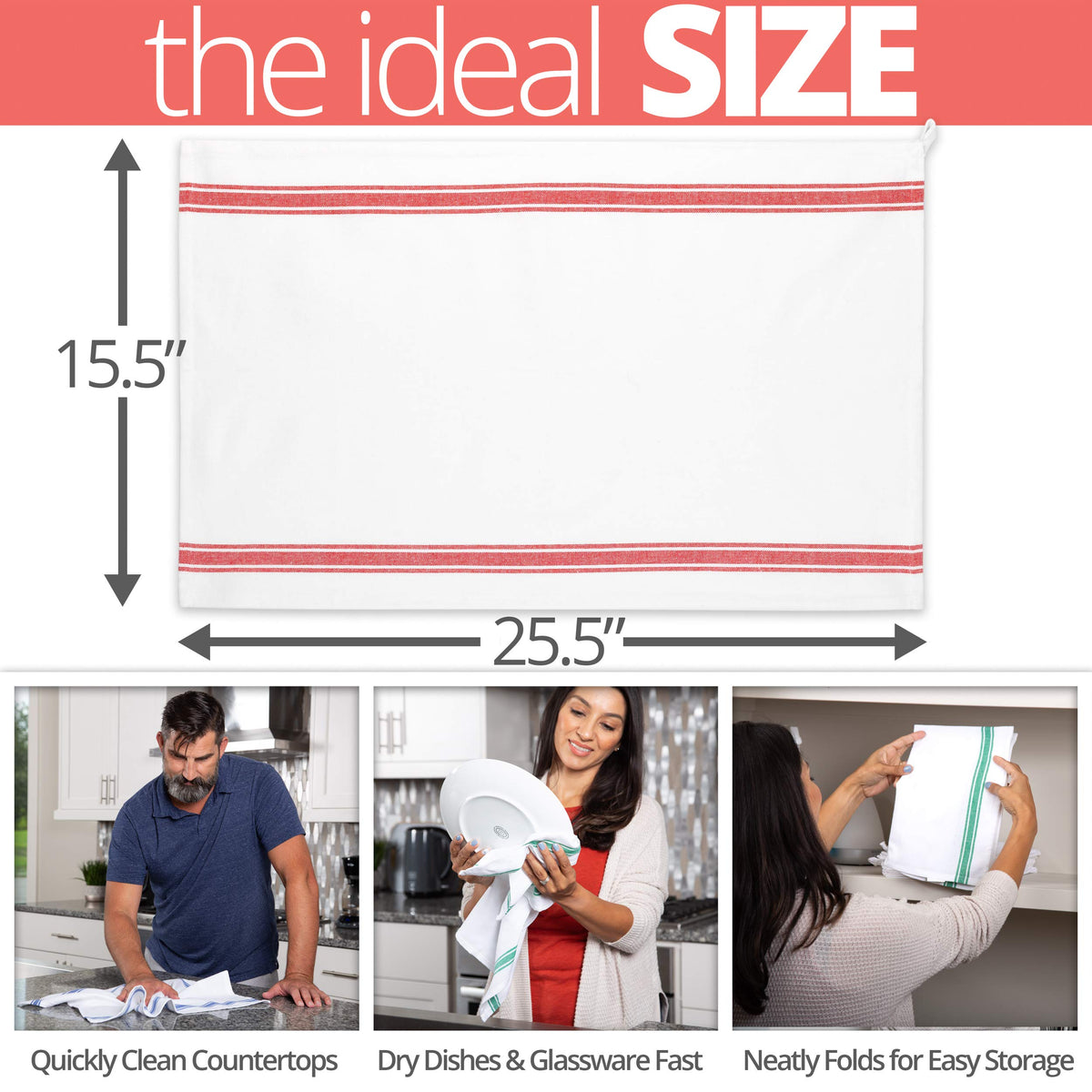 The Ideal Size: Measuring at 25.5 x 15.5 inches, each towel provides nearly 400 square inches of thirsty cotton. This generous size ensures maximum functionality for all your kitchen needs.