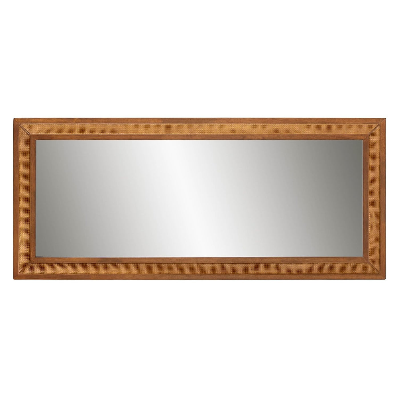 Embellish you space with the subtle luxury of the stunning Rowanne wall mirror. Made in Malaysia, this mid-century inspired piece is crafted from sturdy rubberwood and is adorned with a large central mirror. The bold borders of the rectangular frame are adorned with rattan look accents that add a touch of robust style to the piece. The Rowanne requires assembly and is able to be mounted both vertically and horizontally. Radiating hearty timelessness, the Rowanne wall mirror elevates any arrangement.Features :- Mid-Century wall mirror- Constructed from Rubberwood- Woven synthetic rattan embellishments- Large central mirror- Can be hung both vertically and horizontally- Rectangular silhouette.Specifications :- Product Dimensions : Overall: 31.10" W x 1.00" Thick x 70.90" H; Mirrored Glass: 23.30" W x 0.20" Thick x 63.30" H;.