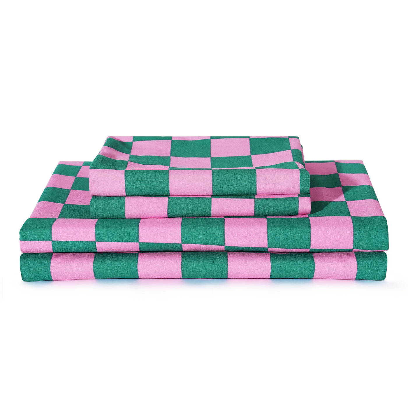 Bed Sheet Set 3 Pieces -Twin Size-Soft Durable Microfiber Bedding Sheet Set,Deep Pocket,Stain,Fade & Wrinkle Resistant (Plaid Pi