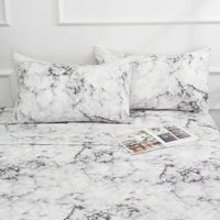 Package Include: Flat Sheet 1 Fitted Sheet 1 Standard Pillowcases 2 Size: Full Size.Color: White Marble.