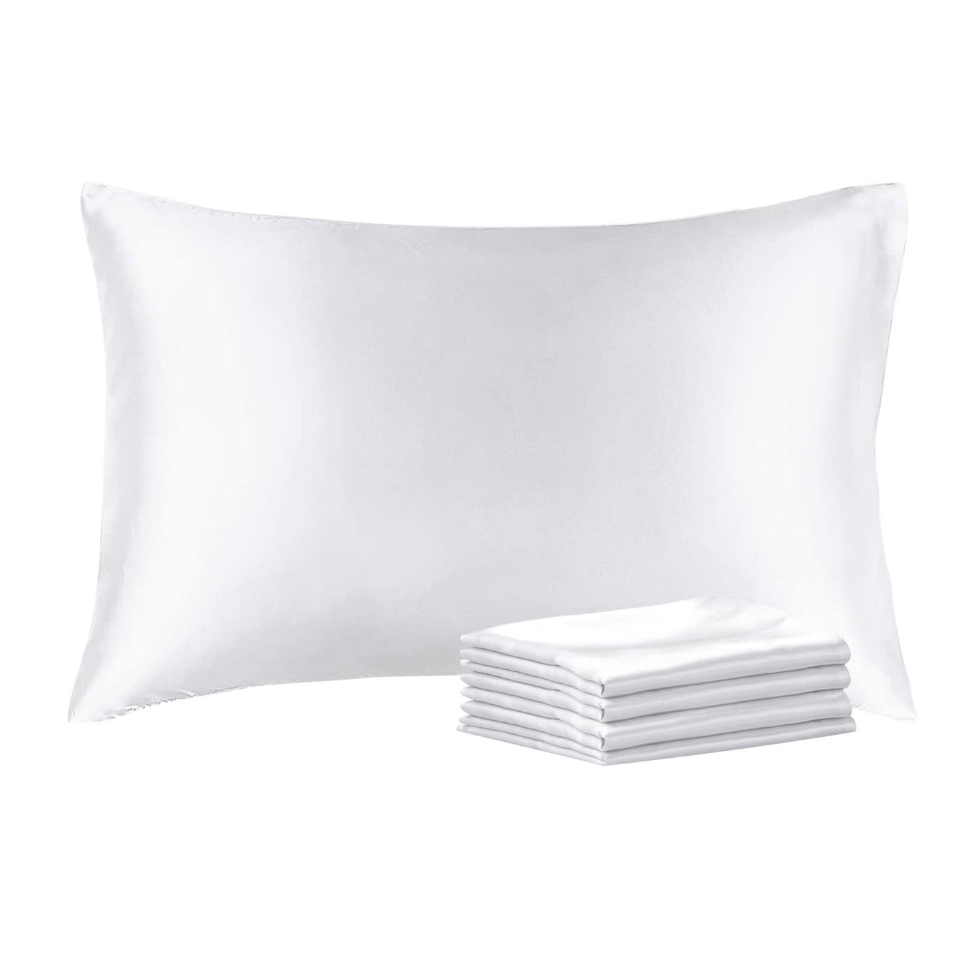 Bedelite Satin Pillowcase With Zipper 4 Pack, White Pillow Cases King Size, Super Soft And Cooling Similar To Silk Pillow Cases, Gift For Women Men(20X40 Inches)
