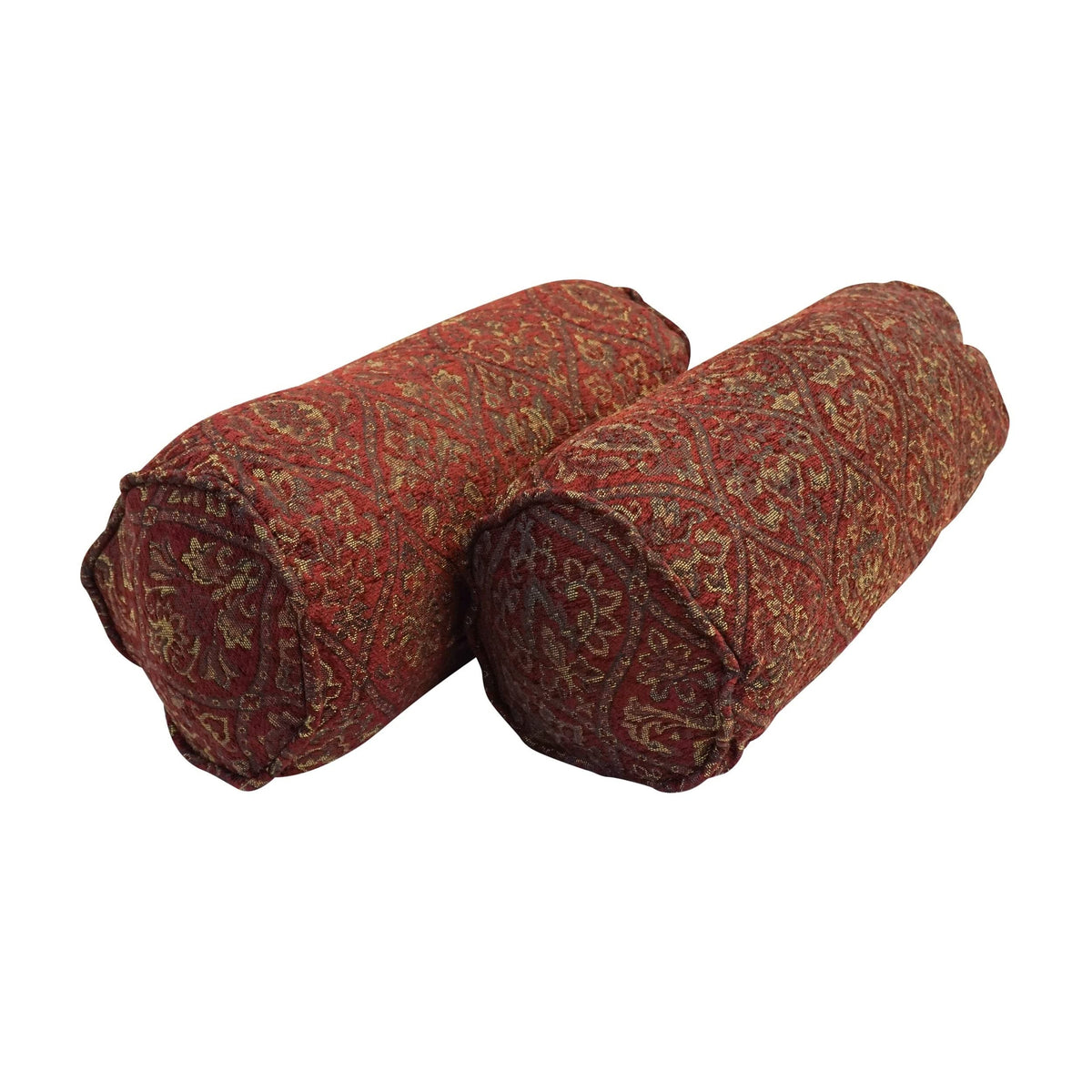 Blazing Needles Corded Jacquard Chenille Bolster Pillow, 20" x 8", Brown Floral 2 Count