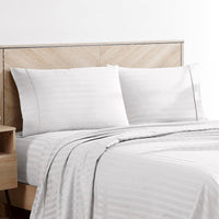 Brielle Home 300 Thread Count Sheet Set, 100% Cotton Oeko-Tex Dobby Striped Jacquard Sheet And Pillowcase Set, White, Twin
